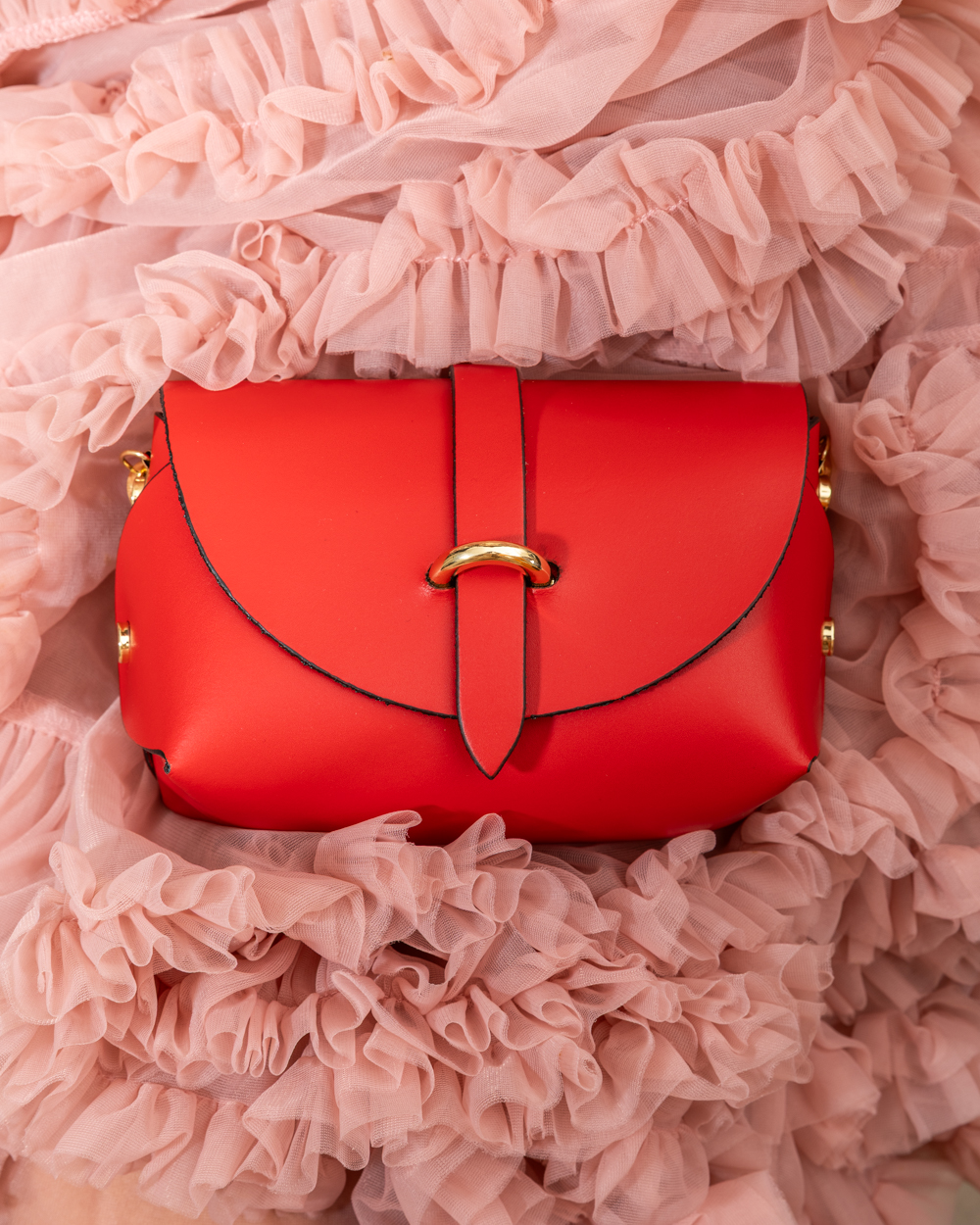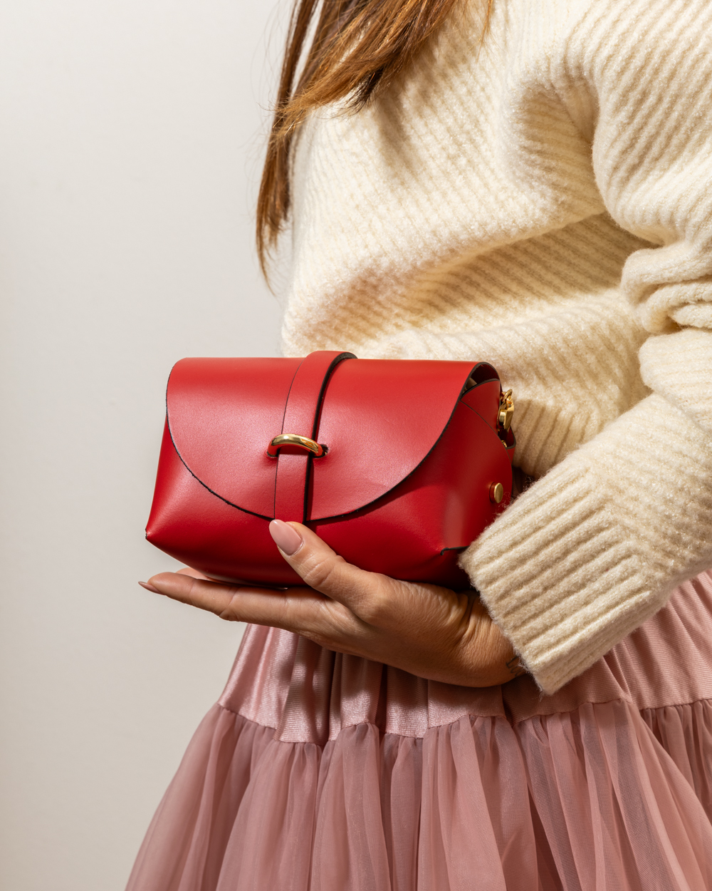 Vibrant, compact, and absolutely irresistible. The ‘Candy’ Bag is designed to stand out. Crafted from premium smooth leather in an intense fire-red shade, this mini bag features a sculptural construction: the leather folds softly at the sides, creating a harmonious and modern volume.