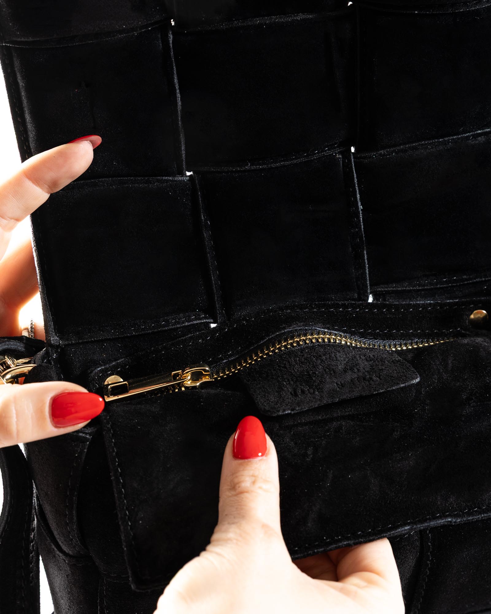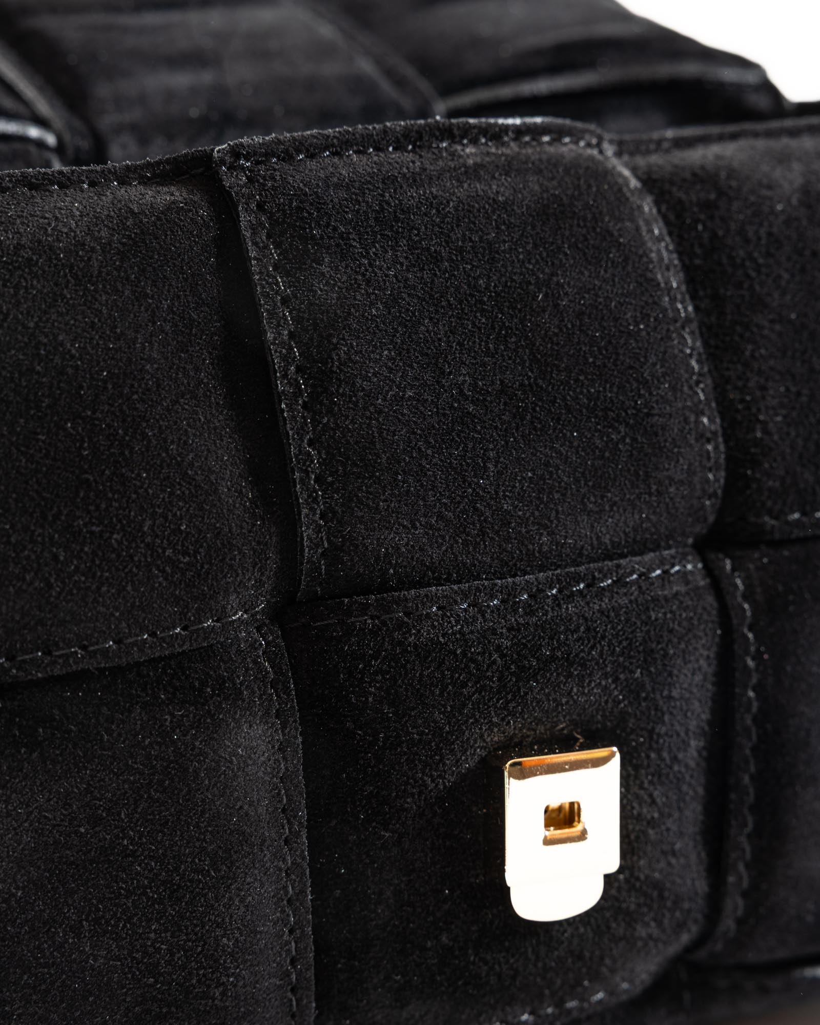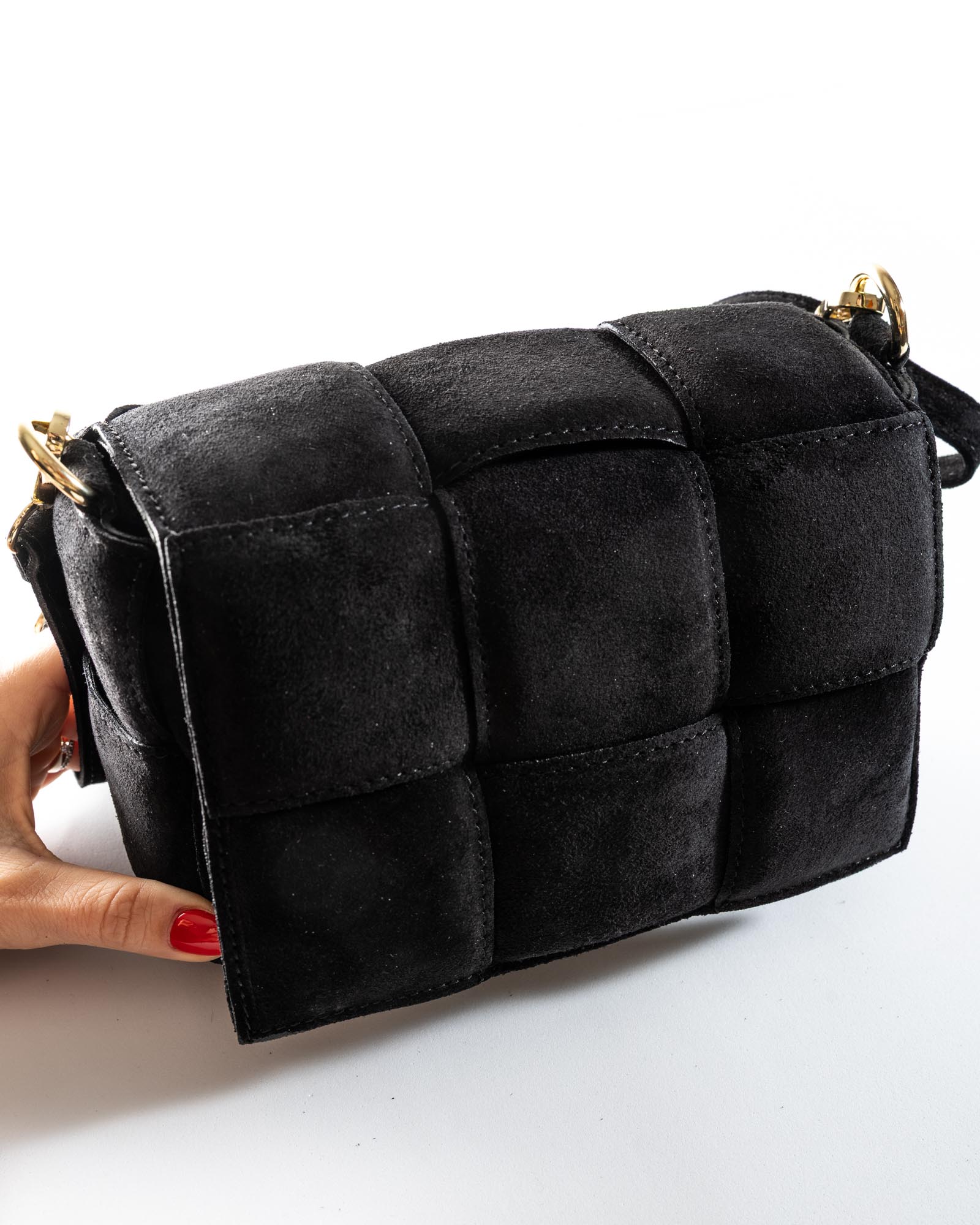 Crafted from soft suede in warm, natural tones, it is a handbag designed to accompany every moment of the day with effortless elegance. Clean lines and soft volumes evoke a timeless aesthetic, while the handcrafted woven detailing in genuine leather enhances its artisanal soul and attention to detail.